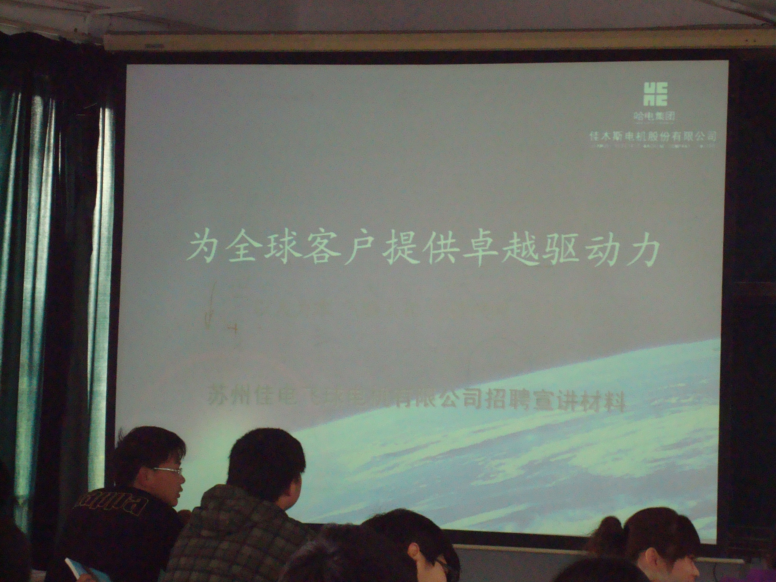 2013年4月24日,佳木斯防爆电机有限公司刘书记、胡经理一行来公司与李元贵经理书记、陈茂国副书记、张学茂副经理商谈合作事宜,并给院11级全体员工开设讲座,现场介绍公司本年度招工信息,胡经理诚挚邀请相关专业同学加入该公司新建分公司(太仓分公司)。公司员工积极响应,活动取得圆满成功。