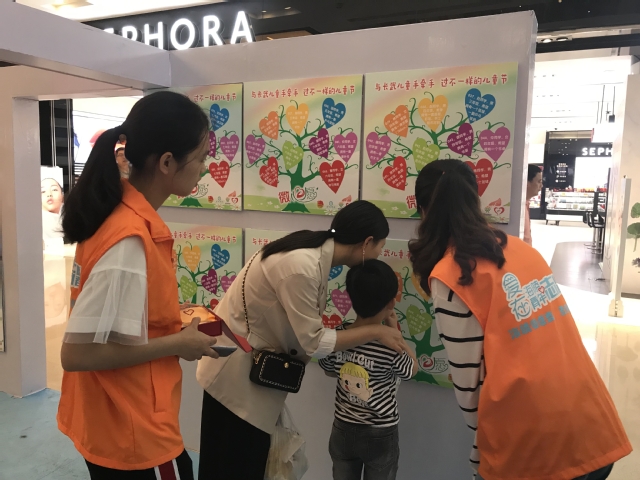 六一前夕,公司V+公益志愿者服务团队在海陵团区委、安利公益基金的支持下,在万达广场室内步行街“有爱青年馆”开展了“牵手长武小朋友,过不一样的儿童节”微心愿征集活动。活动现场展示了365官网体育学子面向长武县征集的117位困境儿童、留守儿童的微心愿,市民每捐出100元爱心款即可获得安利公益基金会提供的100元爱心配捐和爱心奖杯一座,以及幸福蓝海影院提供的观影券2张。活动现场共募集爱心资金3378元,32位长武小朋友的微心愿被认领。