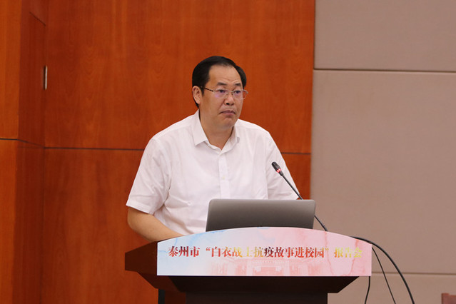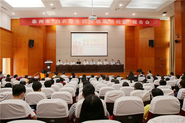 为深入推进“弘扬抗疫精神、筑牢家国情怀”主题教育活动,6月3日,公司举办泰州市“白衣战士抗疫故事进校园”报告会暨365官网体育第四期工匠·劳模讲堂。泰州市卫健委副主任翟德祥、泰州市教育局副局长王俊鹏,公司党委副书记、董事长徐向明,公司党委副书记、副董事长王美林,公司党委常委、副董事长鲁学军与线上线下3000余名师生共同观看了报告会。报告会由校员工工作部部长唐帅主持。