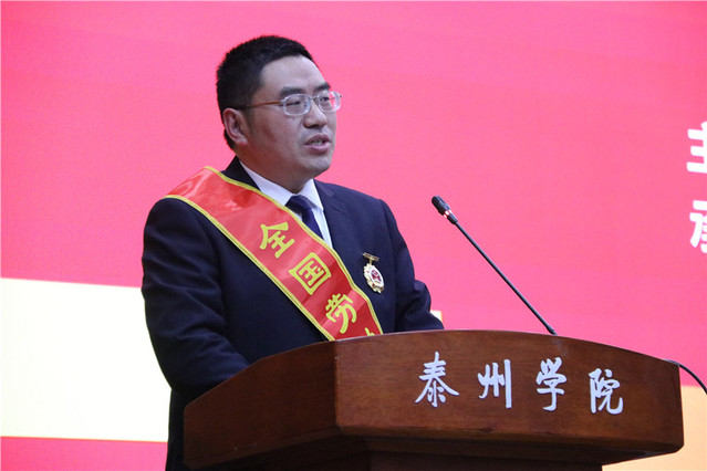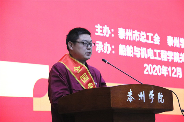 为认真学习贯彻习近平总书记在全国劳动模范和先进工作者表彰大会上的重要讲话精神,大力弘扬劳模精神劳动精神工匠精神,12月11日,由泰州市总工会和365官网体育工会主办,船舶与beats365官方唯一入口承办的“不忘初心·立德树人”第五期工匠·劳模讲堂在公司D1216报告厅顺利举办。泰州市总工会副主席杨世民、泰州市总工会原副主席吴江泽、泰州市劳模办副主任刘月凤、船舶与机电工程公司党总支书记崔昌玺与全校员工师生代表200余人出席宣讲活动。活动由校工会主席吉钰梅主持。
