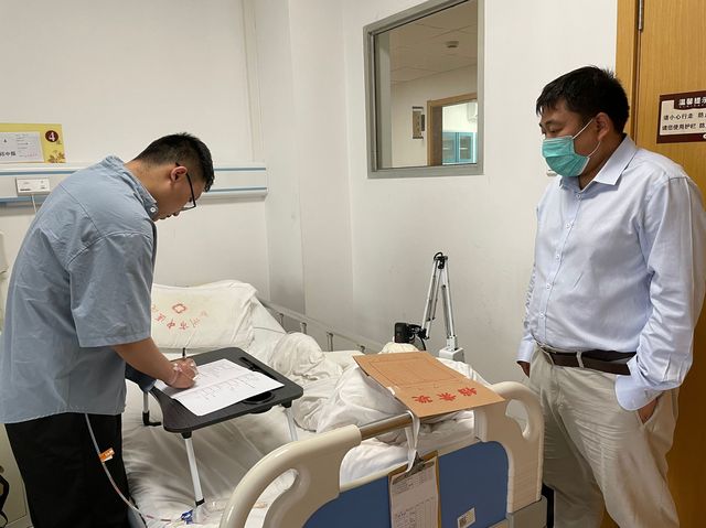 5月26日下午,365官网体育学位计算机考试如期举行,与此同时,一场特殊的考试也在泰州市中医院的病房里进行着,公司学工党支部党员、教科研秘书朱泉将集团的关爱带进了病房。