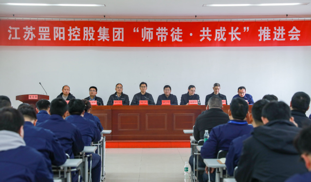 3月4日,公司教务处处长潘小明、副处长许胜、公司经理赵振江、经理助理王健出席了江苏罡阳控股集团召开的“师带徒•共成长”推进会。