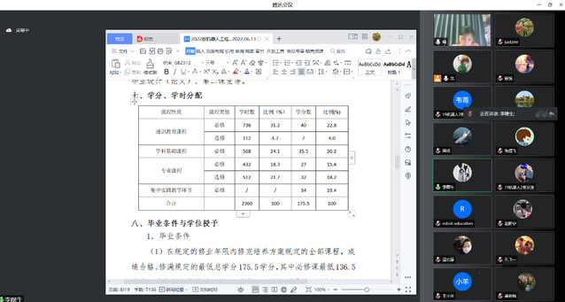 与会专家听取了沈春龙教授的PPT汇报,并根据公司颁布的2022版本科人才培养方案修订指导意见,认真审阅了机器人工程专业2022版本科人才培养方案,认为该培养方案理念先进,能自觉依据本科专业类教学国家质量标准、工程教育认证标准、“新工科”建设指南等制度文件设计课程体系;本着OBE理念,积极构建实践教学体系。专家组还结合产业发展要求和专业发展趋势,从培养目标的达成度、社会需求的适应度,对培养方案设计的科学性、合理性进行了论证并提出了宝贵意见。