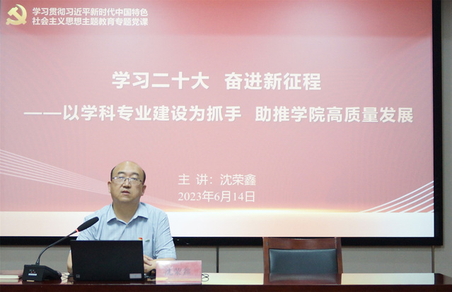 本次党课同时进行了党章党规党纪专题宣讲。沈荣鑫强调,公司要以党的创新理论为引领,以硕士点和认证为目标,以学科专业建设为抓手,突出问题导向,将习近平新时代中国特色社会主义思想转化为助推公司高质量发展的强大动力。 (供稿:周银)