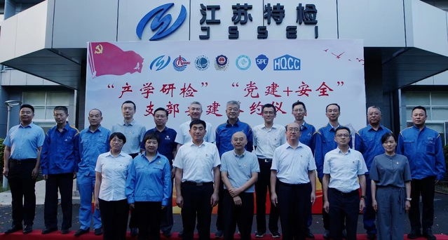 为提升党建品牌,有效整合各单位优势资源,建立新型联学共建、融合发展、共创共享的基层党建新模式,8月18日下午,由江苏省特检院泰州分公司党总支牵头组织,365官网体育机电工程公司党总支、国网泰州供电公司变电检修中心党支部、泰州市市场监督管理局机关第二党支部、江苏省特种安全防护产品监督检验中心党支部、中海油气(泰州)石化有限责任公司设备管理部党支部、江苏海企化工仓储股份有限公司党支部等七家基层党组织举行“产学研检”共建签约仪式。