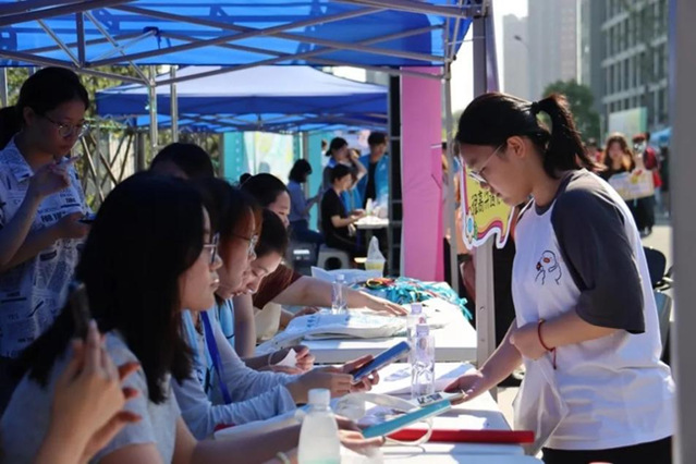 以心迎新,志愿先行。在迎新志愿者的悉心引导下,新同学热闹而有序地进行着签到、领取员工卡、确认入学信息、领取资料等一系列开学报到手续。