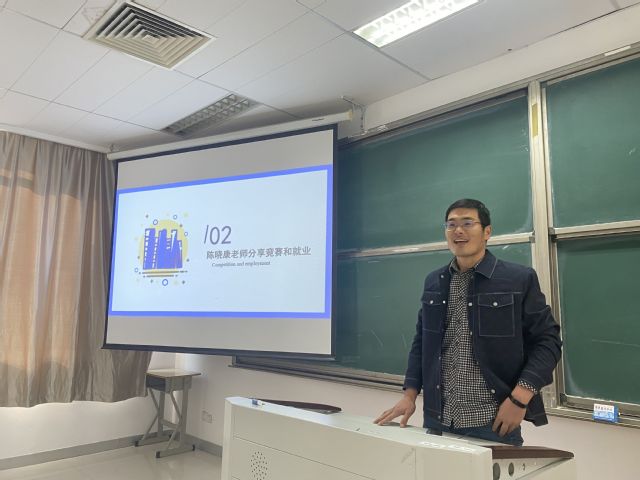活动伊始,专业教师陈晓康分享了“挑战杯”全国老员工课外学术科技作品大赛等学科竞赛参赛经验,并以机器人工程专业为例分析当前就业前景,勉励员工树立科技报国的理想信念,不断提升个人科学研究能力,建立科学有效的职业生涯规划。