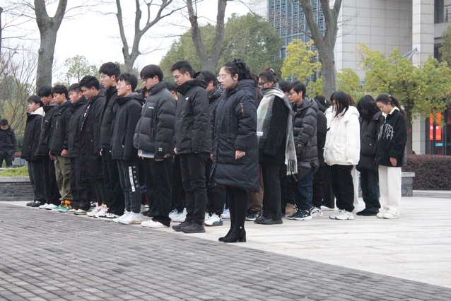 升旗结束后,全场师生向南京大屠杀死难同胞默哀。