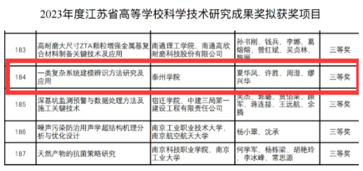 近日,江苏省教育厅公布2023年度江苏省高等公司科学技术研究成果奖评选结果,我院夏华凤老师及其团队完成的项目一类复杂系统建模辨识方法研究及应用”荣获2023年度江苏省高等公司科学技术研究成果奖三等奖。