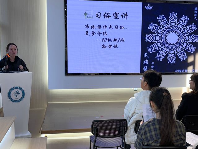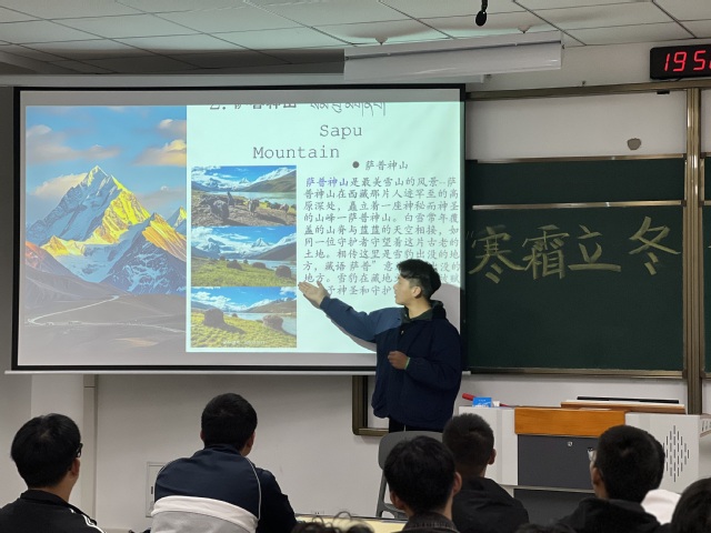 活动期间,来自藏族的才旺吉美同学和来自布依族的孙智恒同学,为同学们讲述家乡的立冬文化与习俗才旺吉美介绍了藏族烧糊糊“冬季羌节”等活动。孙智恒介绍了布依族的特色习俗——扫墓祭祀,在这天会吃糍粑、糯米饭等美食。通过他们的分享,在场同学纷纷表示有机会要去体验一下当地的民俗,感受中华文化的博大精深