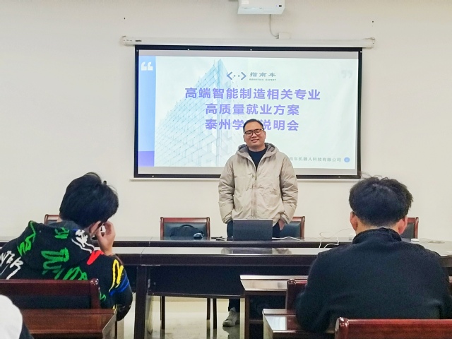 指南车机器人科技有限公司是一家定位于建立以机器人自动化工程师为核心的智能制造生态系统服务商。宣讲会上,企业负责人向同学们详细介绍了公司的发展历程、核心业务、企业文化以及在机器人领域所取得的显著成就。