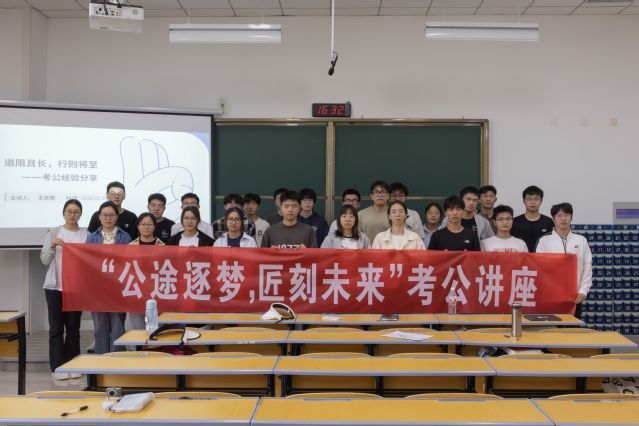 为助力2026届备战公务员考试学子精准备考,5月7日,公司在G4107举办“公途筑梦 匠刻未来”考公经验分享会。此次分享会邀请成功考取泰州市公安局的优秀毕业生代表王志恒同学担任主讲。