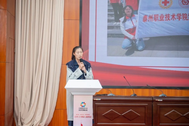 在“博爱青春”志愿服务省级获奖项目宣讲环节,市青联常委、泰州职业技术公司王云老师分享了该校志愿者深入社区、乡村开展服务的感人故事。