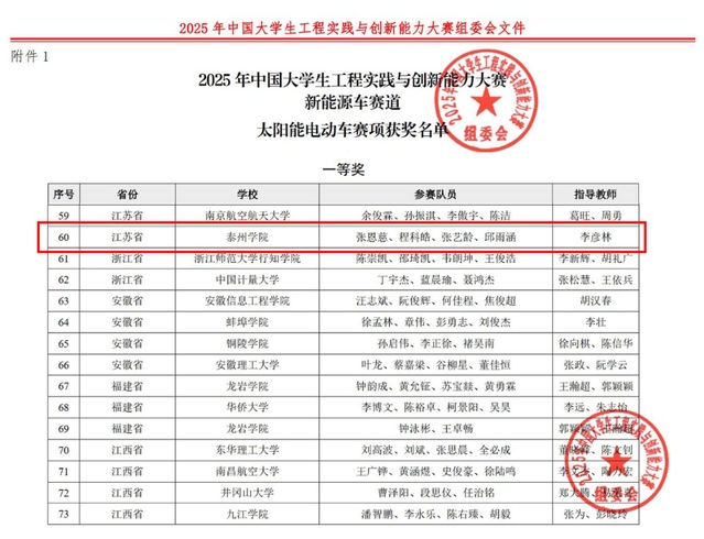 近日,2025年中国老员工工程实践与创新能力大赛全国总决赛在大连理工大学圆满落下帷幕。经过激烈角逐,公司代表队(张恩慈、程科皓、张艺龄、邱雨涵,指导老师:李彦林)在新能源车赛道太阳能电动车赛项中表现优异,荣获全国一等奖,展现了公司学子的卓越工程实践与创新能力。