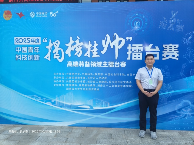 10月12日至14日,由共青团中央等单位主办的2025年度中国青年科技创新“揭榜挂帅”擂台赛高端装备领域主擂台赛在长沙顺利举行。本次大赛吸引了全国众多高校和科研团队参与,公司陈圣峰教师团队联合湖南大学研发的《数孪智控:大型机床几何误差在线预测与自适应补偿技术研究》项目,经过激烈角逐,斩获国家三等奖。